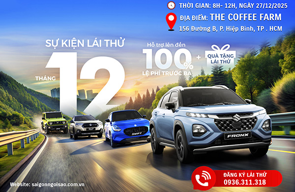 Kính mời Quý khách hàng tham dự chương trình Lái thử & Trải nghiệm các dòng xe Suzuki cùng Suzuki Sài Gòn Ngôi Sao