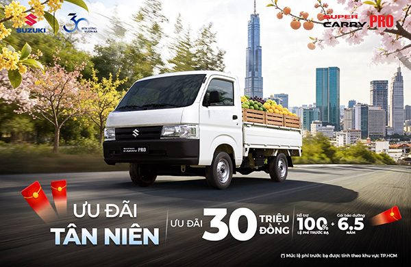 Năm mới, hành trình mới! Khởi đầu may mắn cùng Carry Pro, vững tay lái, vững vận may, sẵn sàng chở lộc đầu xuân. Đặc quyền Tân niên: Ưu đãi 30 triệu đồng gồm 100% lệ phí trước bạ và Gói bảo dưỡng đến 6,5 năm - an tâm vận hành, bứt phá doanh thu trong năm mới.
